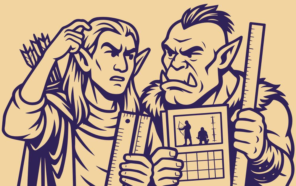 These scales are traditionally named after the height of an average human at that scale, measured from the ground to eye level. For example, a creature standing half the height of a human would measure half the scale’s height — 14 mm from feet to eye level in 28 mm scale.